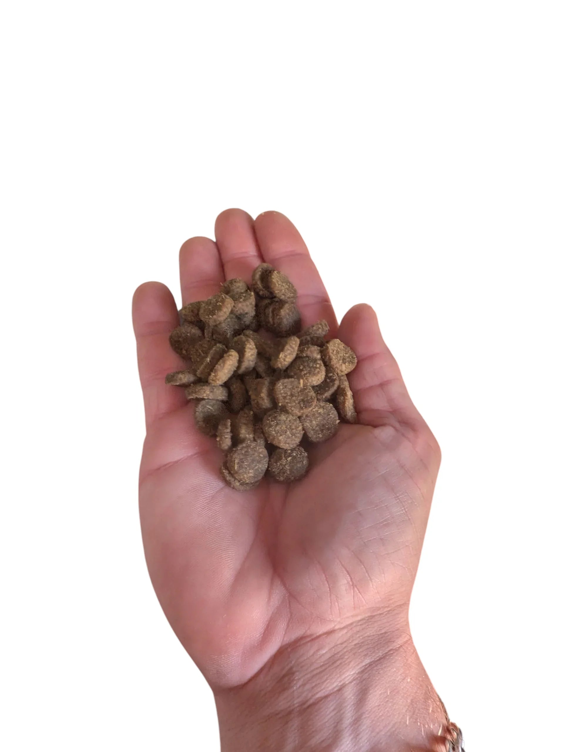 Cessna is geen grote eter, maar vindt deze brokken erg lekker. Iets wat ik niet veel mee maak met Cessna. Haar ontlastig is goed.