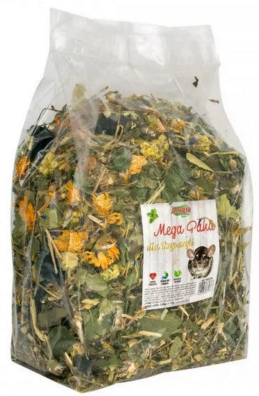 Mega Paka dla szynszyli Alegia to idealna naturalna ziołowa mieszanka z dodatkiem gałązek drzew oraz korzeni dla szynszyli.