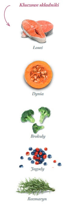 Jest to karma, która łączy najwyższą jakość składników, doskonały smak i naturalne superfoods. Dzięki zawartosci 70%  świeżego łososia, monobiałkowej formule oraz starannie dobranym składnikom wspierającym zdrowie, jest doskonałym wyborem dla psów o wrażliwym układzie pokarmowym.