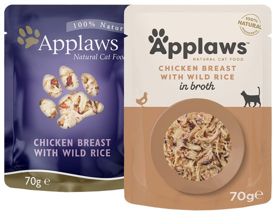 Saszetki Applaws  to najwyższej jakości zawartość, zawierająca tylko i wyłącznie smakowite, czyste kawałki mięsa z piersi kurczaka lub filetu z tuńczyka uzupełnione Dzikim Ryżem, Szparagami, Anchois, Krewetkami Pacyficznymi...