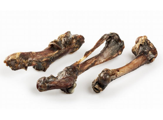 Kość dzika to twardy gryzak o intensywnym zapachu i długości ok. 20 cm, powstający z kości szynkowej. Kość jest obleczona niewielką ilością mięsa. Za sprawą wydłużonego procesu suszenia w niskiej temperaturze oddajemy je w jak najmniej zmienionym składzie, zawierającym dużo substancji odżywczych, kolagenu i szpiku. Będzie doskonałym gryzakiem dla średnich i dużych psów, o silnej potrzebie gryzienia i żucia. Sprawdzi się w czyszczeniu zębów z płytki nazębnej oraz poprawia kondycję dziąseł, dbając o prawidłowe uzębienie psa. Zalecamy podawać kość dzika pod ścisłą kontrolą właściciela, zwracając baczną uwagę na psy z tendencją do łapczywego jedzenia lub nieprzywykłym do spożywania kości.