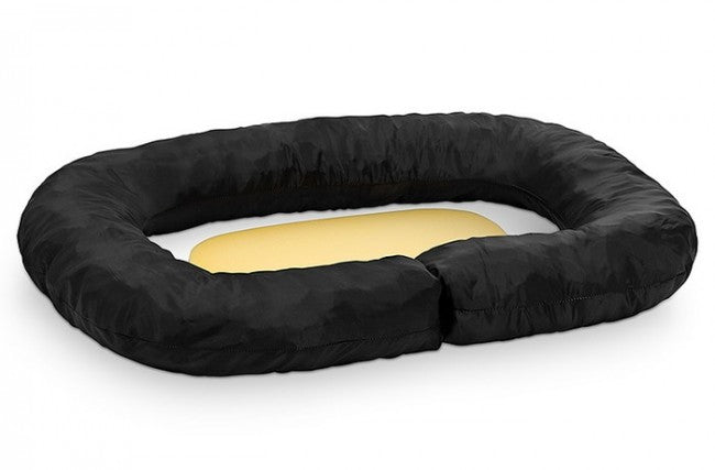 Wkład do pontonu Bimbay stanowi gąbkowy materac oraz walcowata część tworząca boki legowiska. Materiał gąbkowy utrzymuje kształt oraz dopasowuje się do ciała zwierzęcia, zapewniając mu komfort. Dodatkowo materiał gąbkowy zaszyto w ochronnym futerale. Docelowy kształt legowiska pozwala psu przyjąć wygodną pozycję wraz z podparciem.