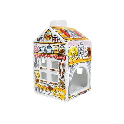 The Blond Amsterdam Dog Lantern (8x8x14 cm) is a charming, brightly colored tealight holder with a dog print all around, creating an atmospheric light with a wax candle. The holder is made of earthenware and is 14 centimeters tall. The windows allow the room to be softly illuminated. The chimney, the dog print in Blond Amsterdam style, and phrases like "Home is where my dog is" make this lantern the perfect addition to any dog lover's home!