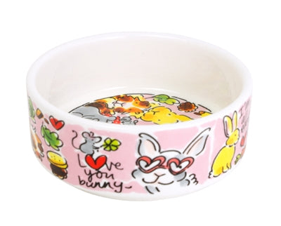 The Blond Amsterdam Rodent Food Bowl Nuts About You 10x10x4 cm is a colorful, cheerful earthenware food bowl from the well-known Blond Amsterdam brand, featuring a fun print and is dishwasher safe. Serve your rabbit, guinea pig, hamster or gerbil their meal in style with this fun food bowl from Blond! Blond's pet products are characterized by their cheerful, floral prints in the brand's well-known style. This fun food bowl is no exception, featuring a print of various rodents and the text 'Nuts about you'. The earthenware bowl is microwave and dishwasher safe and has a diameter of 10 centimeters. The height of the rim is 4 centimeters. A fun, cheerful food bowl that shouldn't be missing from your Blond collection!