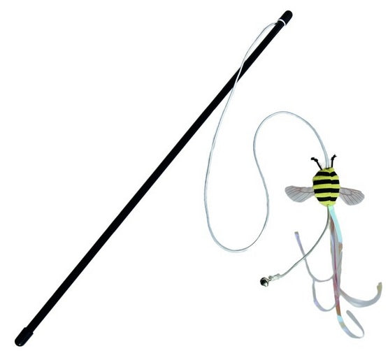 BzzZZzz! Wędka z pszczołą BUBA Pet to prosta, ale wyjątkowo skuteczna zabawka interaktywna, która uruchamia u kota to, co najważniejsze: pogoń, czajenie się, skoki i „polowanie” zakończone złapaniem zdobyczy. Miękka pszczoła, wstążeczki oraz dzwoneczek tworzą zestaw bodźców (ruch + dźwięk + faktura), dzięki którym nawet znudzony kot chętniej wchodzi w zabawę. To świetny sposób na codzienną dawkę aktywności w domu i bezpieczne rozładowanie energii.