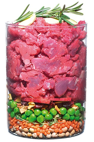 - Każdy kilogram karmy jest przygotowany z 600 g świeżego mięsa: 60% świeżego mięsa oraz 40% warzyw, owoców, ziół, superfood.
