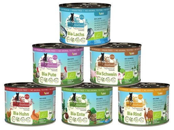 Smakowita odmiana naszej linii karm Catz FineFood Bio umożliwia karmienie kotów specjalnymi posiłkami z certyfikowanymi ekologicznymi składnikami!