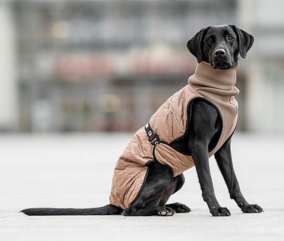 3) Szyja musi być osłonięta, ale nie „duszona”. Ściągacz ma trzymać ciepło i ograniczać nawiew, ale nie może uciskać tchawicy. Jeśli Twój pies ma skłonność do kaszlu lub problemy z tchawicą, zwróć szczególną uwagę na komfort w tym obszarze i rozważ prowadzenie na szelkach.