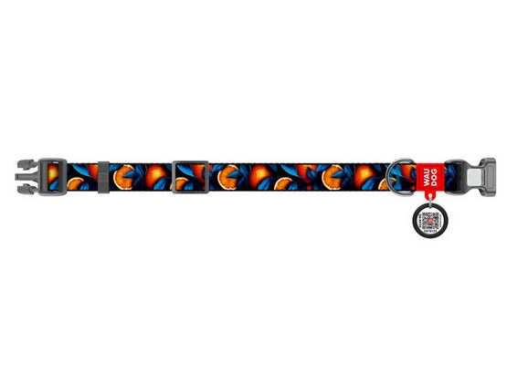 Collar WauDog Nylon Obroża nylonowa z QR-paszportem, plastikowy fastex, wzór POMARAŃCZE, 20mm/28-40cm