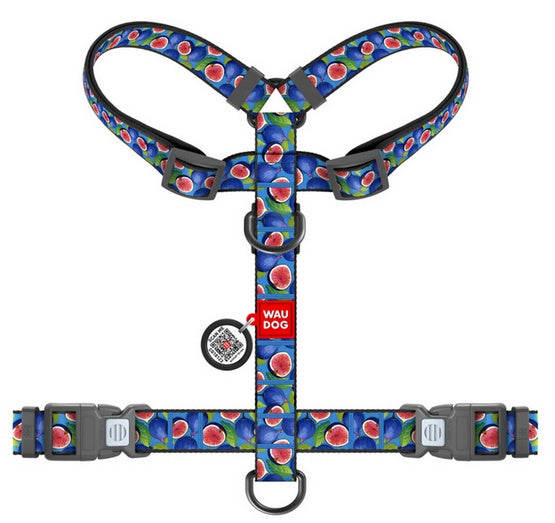 Collar WauDog Nylon Szelki nylonowe anatomiczne w kształcie litery H, z QR-paszportem, plastikowy fastex, wzór FIGA, rozmiar M 20mm