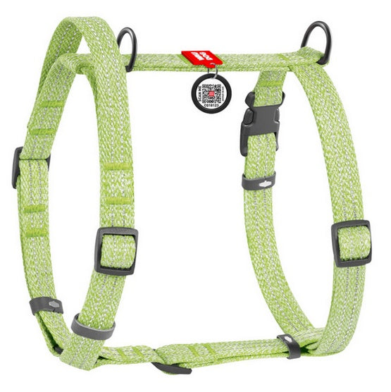 Collar WauDog Re-Cotton Szelki z rączką z regenerowanej bawełny anatomiczne w kształcie litery H, odblaskowe z QR-paszportem, plastikowy fastex, L jasnozielone