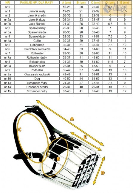 Najwyższej jakości kaganiec metalowy dostępny w szerokiej gamie rozmiarów.