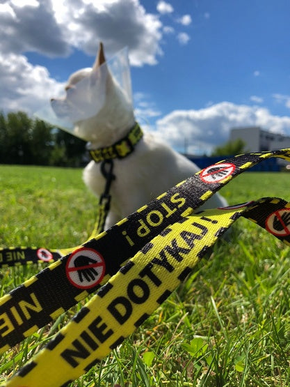 Niektórzy ludzie, szczególnie nieposiadający psów nie potrafią dobrze odczytywać komunikatów ze strony psa. Jasna informacja płynąca z wyraźnego napisu na szelkach, smyczy czy obroży powinna być zrozumiała niemal dla każdego. Do stworzenia kolekcji "Nie dotykaj" zainspirowaliśmy się inicjatywą "The Yellow Dog Project". Ideą projektu jest, aby zwrócić uwagę spacerowiczów na żółty kolor będący elementem psiej "garderoby". Żółty ma komunikować, że akurat ten psiak potrzebuje więcej przestrzeni i nie powinniśmy mu przeszkadzać, ani zbliżać się do niego.
