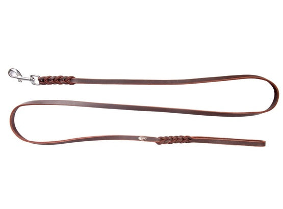 Dingo Smycz skórzana natłuszczana z zaplatanymi elementami 1,2x180cm brązowa