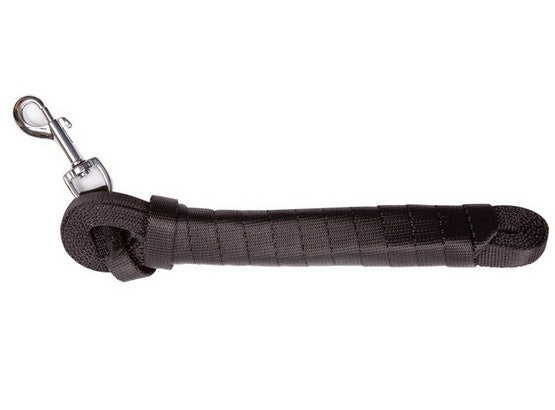 Smycz treningowa z taśmy jest wyposażona w metalowy karabińczyk. Został on pokryty chromem, dzięki czemu jest bardziej odporny na kontakt z wodą. Oprócz tego smycz treningowa posiada wygodną, dobrze leżącą w dłoni rączkę. Dzięki temu pies nie wyszarpnie się podczas treningu.