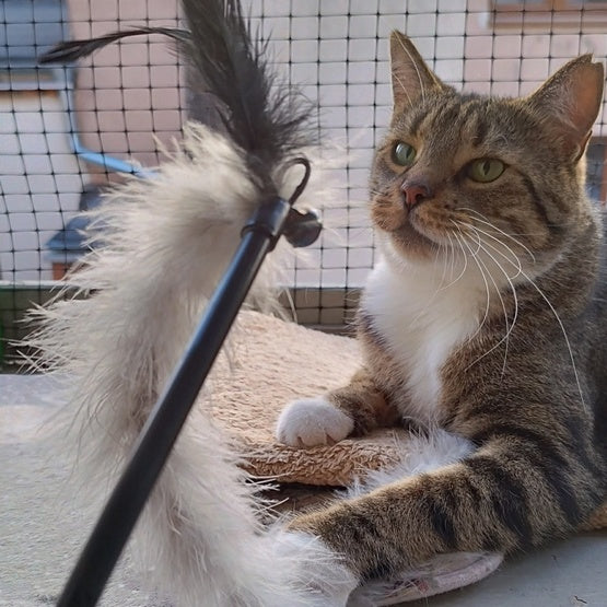 Długi i miękki puch sprawi, że żaden kot nie oprze się zabawie z wędką. Oprócz miękkiego puchu i piórek, w wędce został ukryty dzwoneczek. Dzięki niemu Twój kot będzie słyszał zabawkę z daleka i przygotowywał się do zabawy!