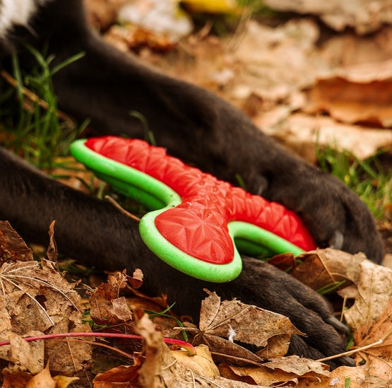 Bumerang zawiera w środku piszczałkę dodatkowo stymulującą psa.