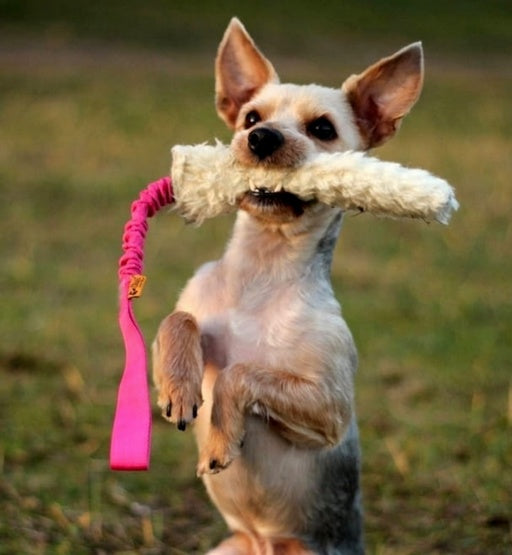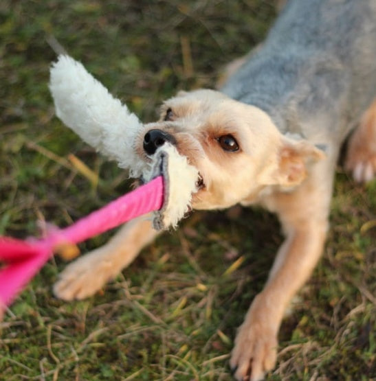 Dingo Zabawka dla psa - Szarpak Wełna owcza z rączką bungee różowy