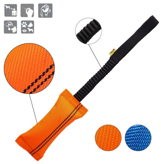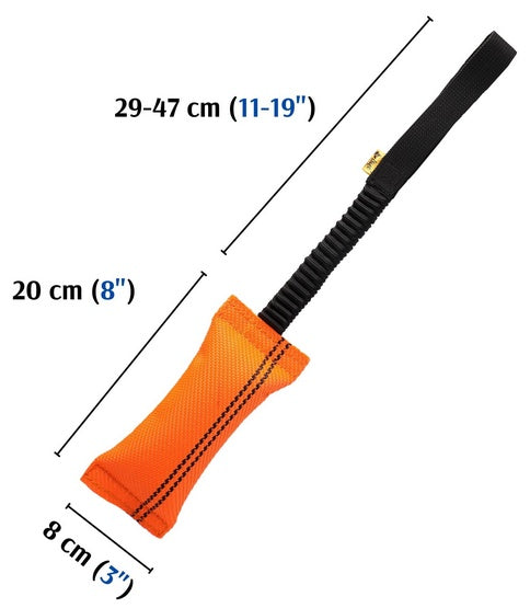 Dla wzmocnienia konstrukcji szarpaka, na obu końcach został on zszyty solidnymi nićmi. Wytrzymała zabawka idealnie nadaje się zarówno do zabawy z psem, jak i profesjonalnych treningów. Mocny uchwyt pomaga utrzymać opiekunowi zabawkę podczas gryzienia jej przez psa.