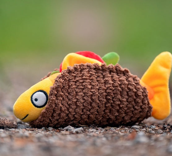 Mimo apetycznego wyglądu zabawki w kształcie taco, pamiętaj, aby nie zostawiać Twojego psa samego podczas zabawy, ponieważ może nie oprzeć się tej smakowitej zabawce.