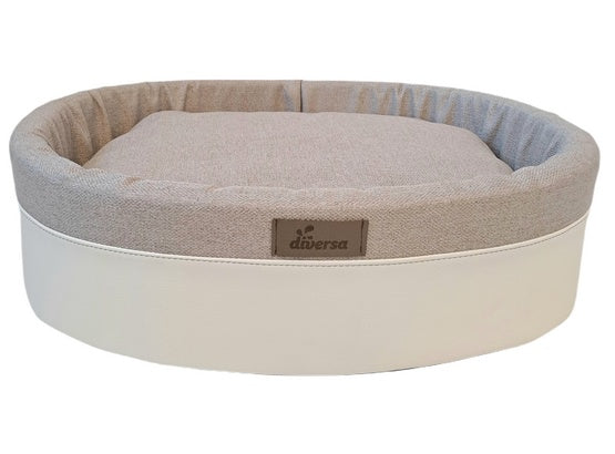 Legowisko posiada wyjmowaną poduszkę, która została wypełniona miękką mieszanką, zapewniającą komfort podczas wypoczynku oraz izolację od podłoża. Poduszka w pełni nadaje się do prania w pralce. Obrzeża zostały wykonane z grubszej pianki, która zapewnia wygodę podczas leżenia a przy tym nie traci swoich pierwotnych kształtów. Użyta eco-skóra nadaje elegancji legowisku, a także ułatwia utrzymanie w czystości posłania, które wystarczy jedynie przetrzeć wilgotną szmatką, aby znów było perfekcyjne.
