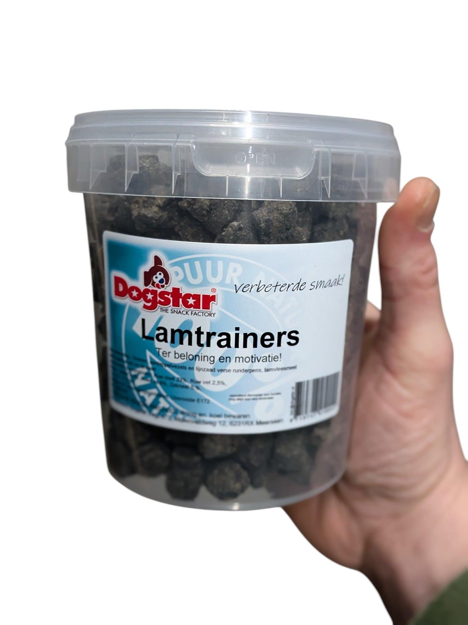 De Dogstar Lamtrainers 850 ml zijn hondensnacks, ideaal om in te zetten tijdens de hondentraining. Beloningen zijn een enorm belangrijk onderdeel van de training. De Kiptrainers van Dogstar zijn de ideale beloning door het kleine formaat en de lekkere smaak. Je kunt ze natuurlijk ook als lekkernij tussendoor geven. De trainers zitten in een handig potje, waardoor ze langer vers blijven.