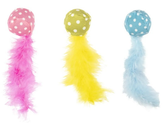Twarda piłeczka w kropki i miękki piórkowy ogonek!