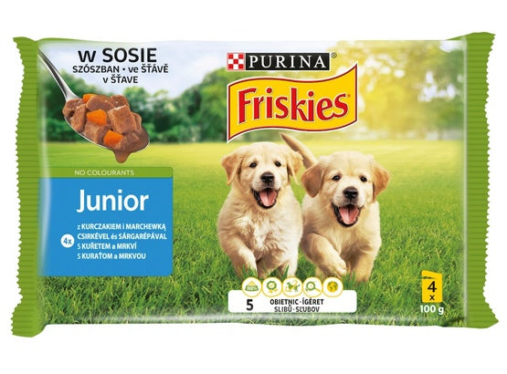Friskies Dog Junior Kurczak i marchewka w sosie saszetki 4x100g