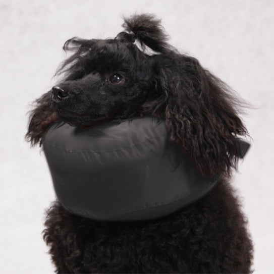 Wykonany z tkaniny poliestrowej, wypełniony włóknem poliestrowo silikonowym. Zapinany na rzep. Tzw. „oponka”. W wewnętrznej części kołnierza zastosowano szlufki, w które wsuwa się dobrze dopasowaną obrożę i zapina ją na szyi psa lub kota, następnie zapina się rzep ściągając dość mocno kołnierz. Kołnierz ten jest alternatywą dla dotychczasowych rozwiązań zabezpieczeń, nie powoduje zaburzeń pola widzenia nie powoduje zaburzeń pola słyszenia. Pozwala na komfortowe spożywanie posiłków i wody. „Nie rozbija otoczenia i właściciela”. Doskonale spełnia swoje funkcje. Jest wodoodporny, można go prać w pralce i suszyć w suszarce bębnowej, można także umyć ściereczką.