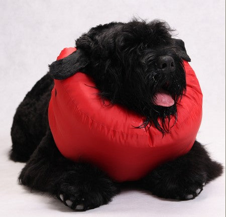 Wykonany z tkaniny poliestrowej, wypełniony włóknem poliestrowo silikonowym. Zapinany na rzep. Tzw. „oponka”. W wewnętrznej części kołnierza zastosowano szlufki, w które wsuwa się dobrze dopasowaną obrożę i zapina ją na szyi psa lub kota, następnie zapina się rzep ściągając dość mocno kołnierz. Kołnierz ten jest alternatywą dla dotychczasowych rozwiązań zabezpieczeń, nie powoduje zaburzeń pola widzenia nie powoduje zaburzeń pola słyszenia. Pozwala na komfortowe spożywanie posiłków i wody. „Nie rozbija otoczenia i właściciela”. Doskonale spełnia swoje funkcje. Jest wodoodporny, można go prać w pralce i suszyć w suszarce bębnowej, można także umyć ściereczką.
