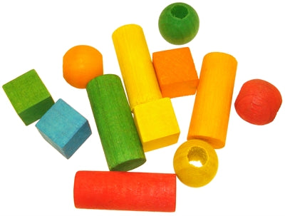 These wooden blocks are the refill for the Treasure Chest. The blocks have striking colors that attract the bird's attention.