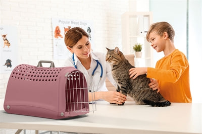 Transport your cat or small dog easily with this sturdy Linus transport box from Imac! The box has a modern, rounded design that sets it apart from other pet carriers. The carrier is made of special, non-toxic plastic and features round ventilation holes on the top. This ensures sufficient air circulation for your pet! The front of the carrier consists of a sturdy wire mesh door that can be locked in four places. The door can also be completely removed, making it easier to get your pet in and out of the carrier. The open structure allows your pet to see outside well, which will reduce stress. Easy to move thanks to the sturdy handles that fit nicely into the shape of the carrier, and the box has four feet for better stability. A very complete, sturdy travel carrier for dogs, cats and rabbits.