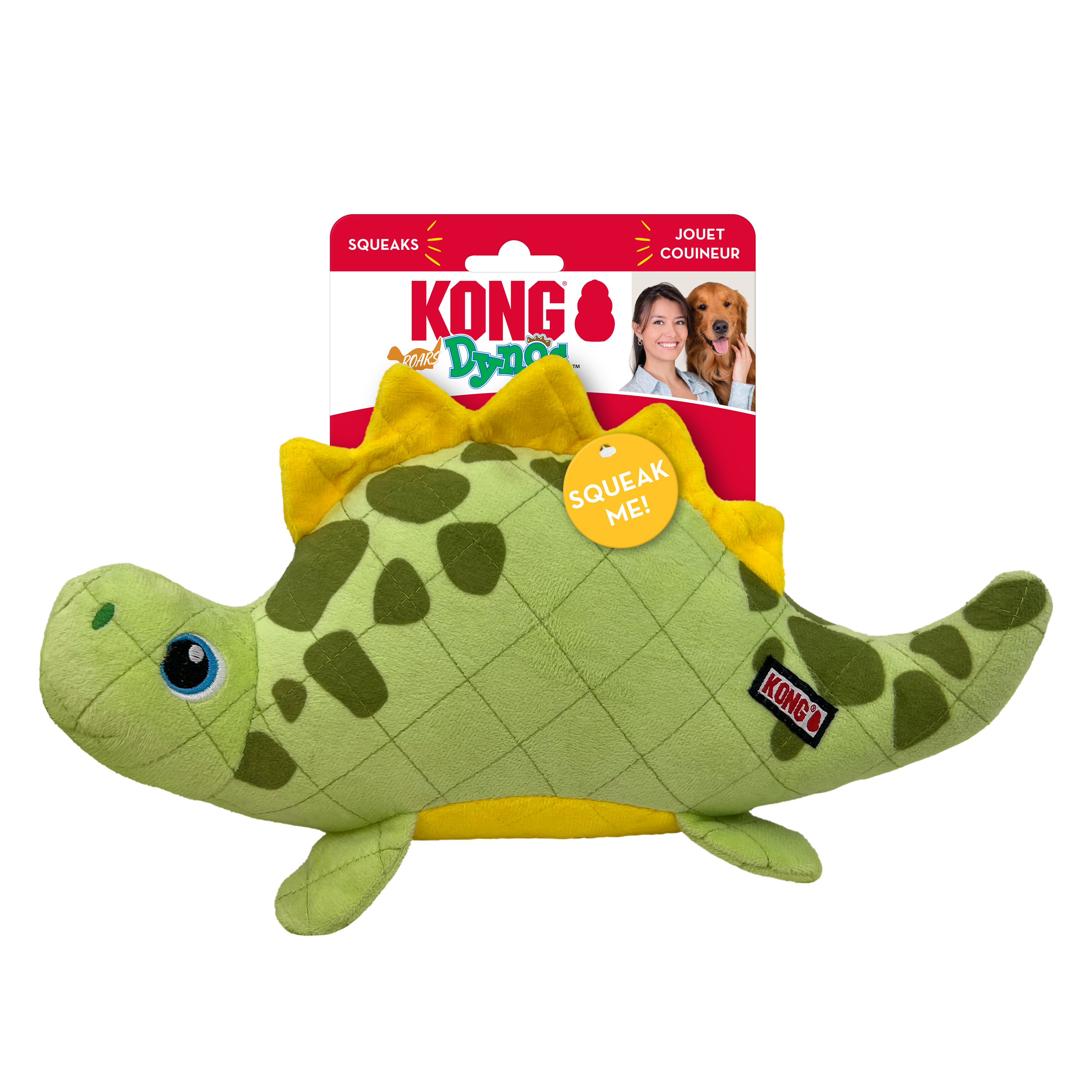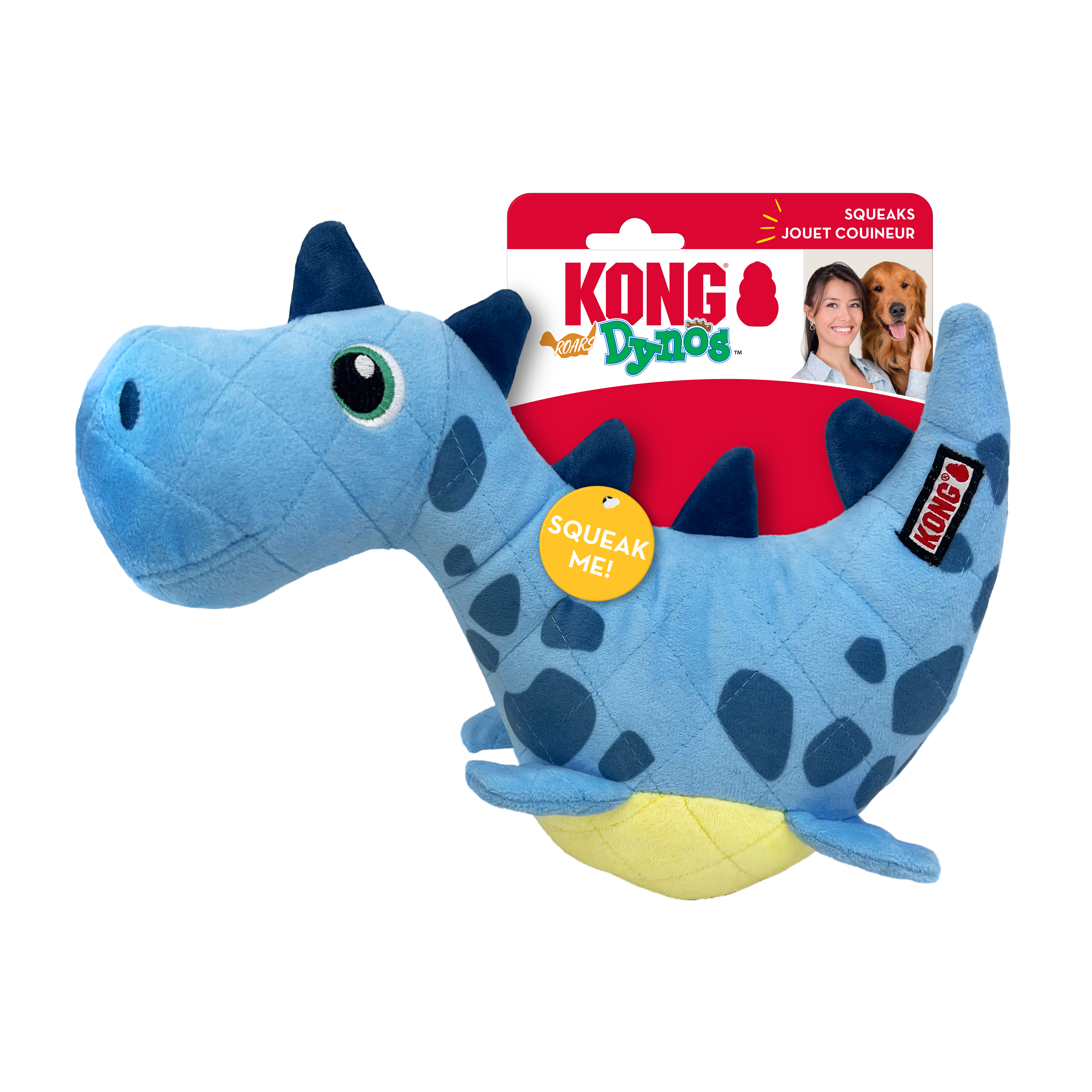 KONG Dynos Roars’ round bellies help them roll and spin on the ground, eye-catching actions that entice dogs into Jurassic adventures of fetching and tugging. An oversized squeaker sparks hunting instincts and prolongs prehistoric play. Their plush hides are lined and cross-stitched for long-lasting indoor fun.