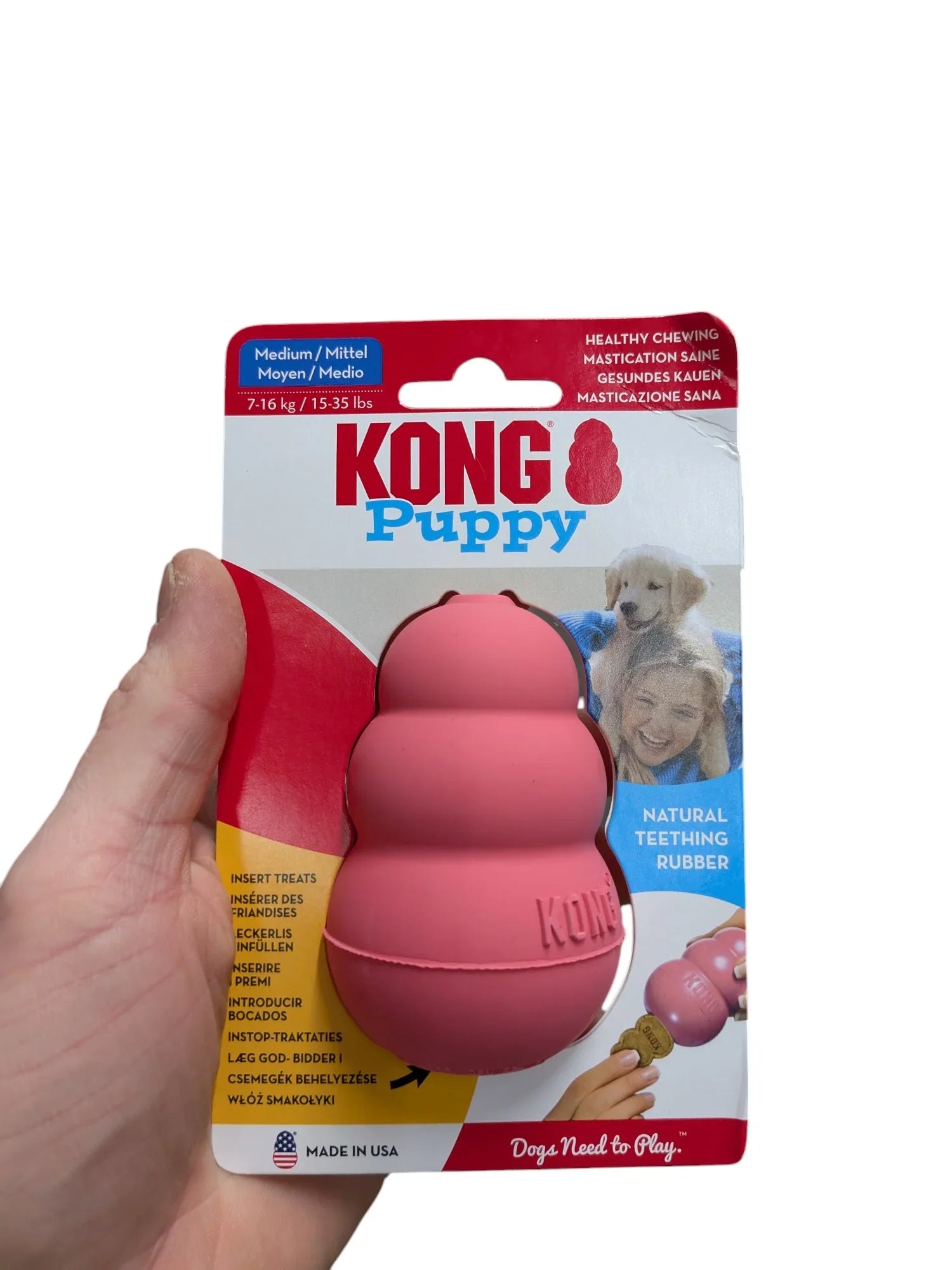 De KONG Puppy is speciaal ontwikkeld als het eerste speelgoed voor puppy’s. Gemaakt van 100% puur latex, is dit speeltje zachter dan de klassieke KONG, waardoor het extra bescherming biedt aan het tandvlees. Het helpt pups bij het ontwikkelen van een sterk gebit en biedt tegelijkertijd een leuke en veilige kauwervaring.