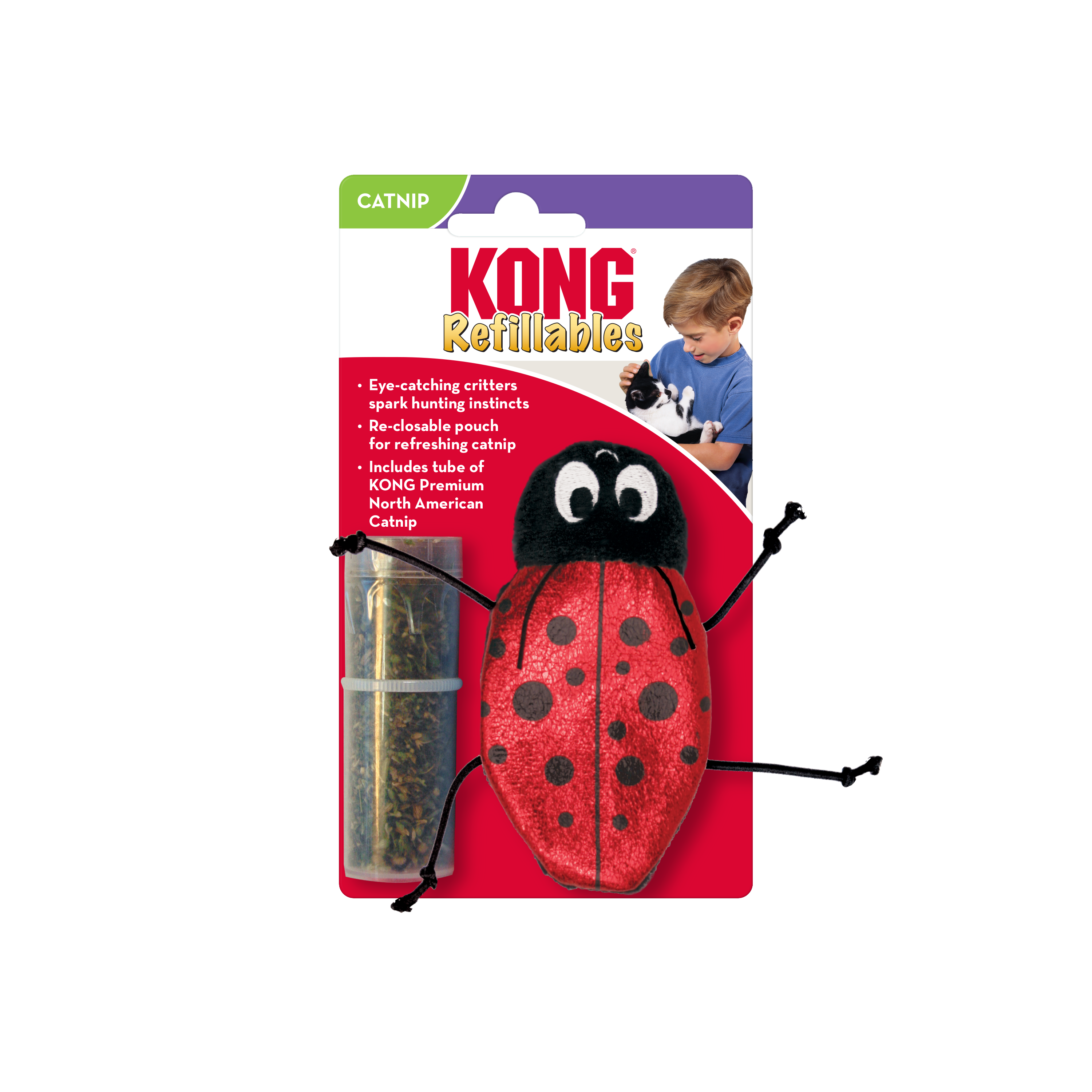 KONG Refillables Critter Collection’s eye-catching pals’ re-closable pouches allow catnip to be refreshed for endlessly engaging play. Adorable, shiny critters spark hunting instincts. Lightweight for pouncing and batting, their limbs entice dragging adventures. Includes tube of KONG Premium North American Catnip.