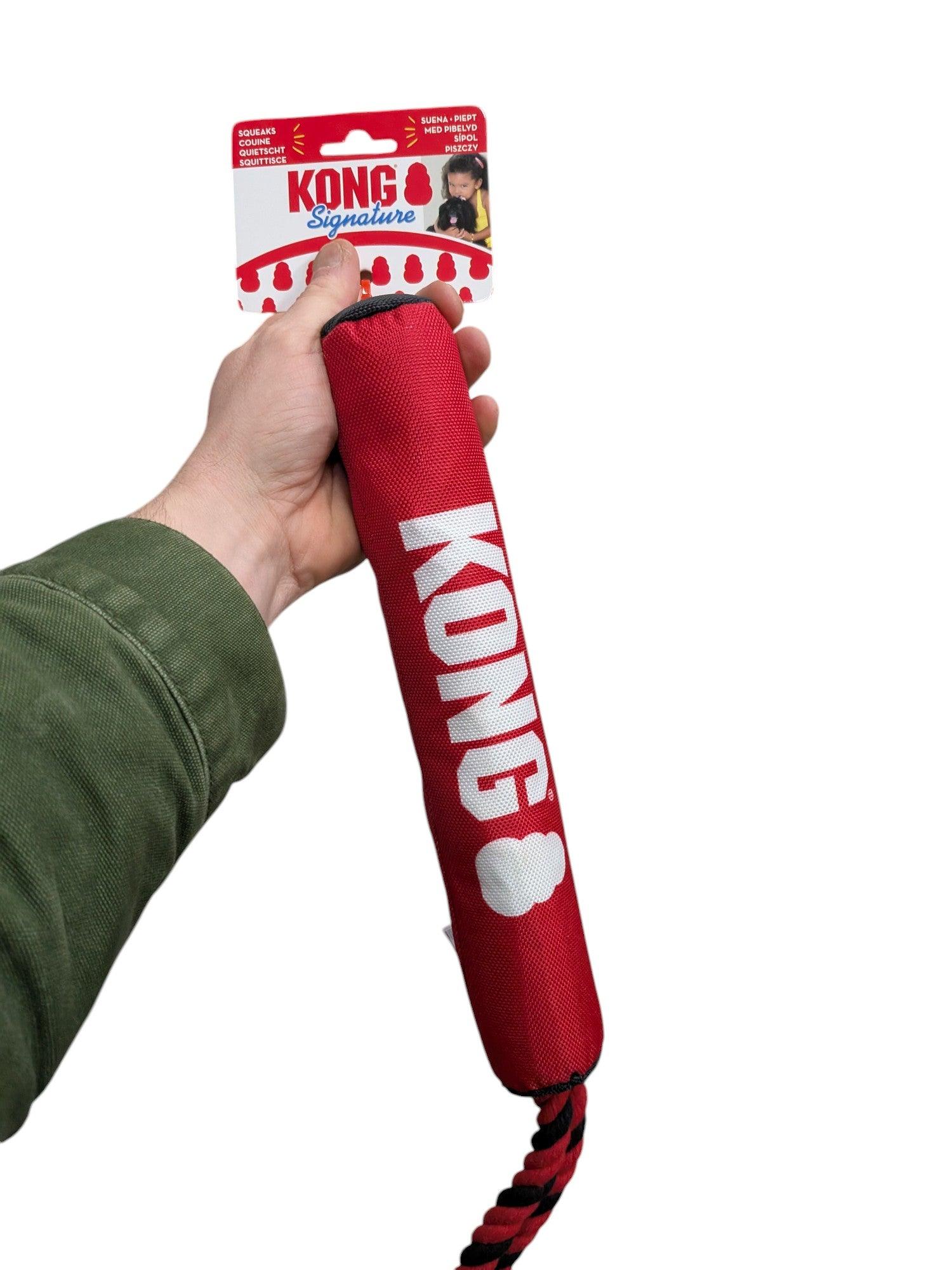 Kong Signature Stick Met Touw Rood / Zwart - Met handvat, pieper, ratel en ritsel voor extra plezier