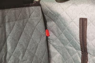 De deken past zowel in de achterbak van grotere auto’s als over de achterbank en beschermt tegen modder, zand, water, haren en krassen. Dankzij de uitklapbare bumperflap voorkom je beschadigingen bij het in- en uitstappen, en met de meegeleverde Swivel Tether houd je jouw hond veilig op z’n plek – of hij nu achterin de laadruimte zit of op de bank naast je reist. Twee openingen in de deken maken het mogelijk om één of twee veiligheidstuigjes vast te maken aan een gordel of haak.