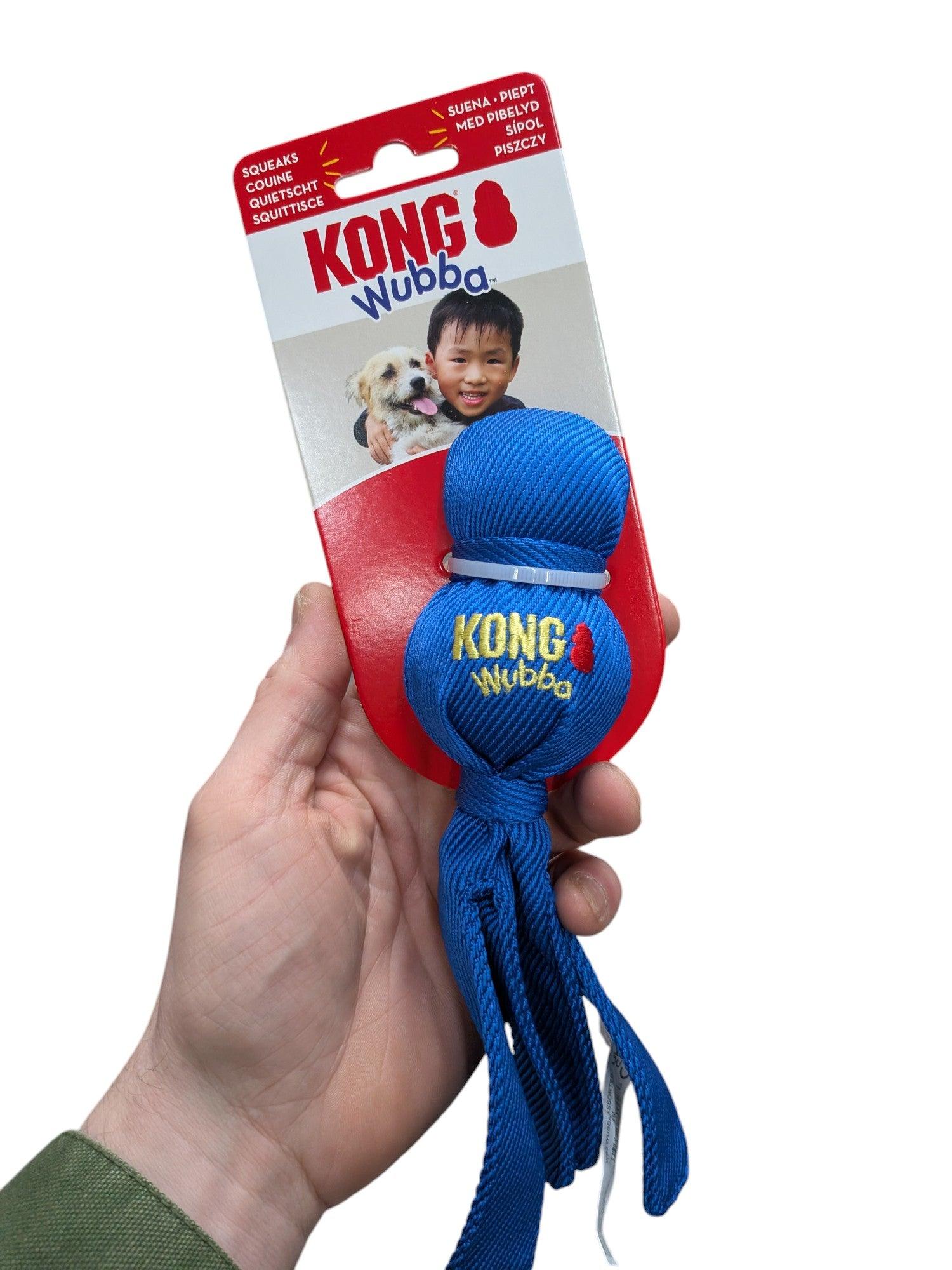 De KONG Puppy Wubba is hét ideale speeltje voor jonge honden, ontworpen voor interactieve trek- en apporteerspelletjes. Dit veelzijdige speeltje combineert twee ballen – een tennisbal bovenop en een piepbal onderop – die samen worden bedekt door duurzaam ballistisch nylon voor extra stevigheid.