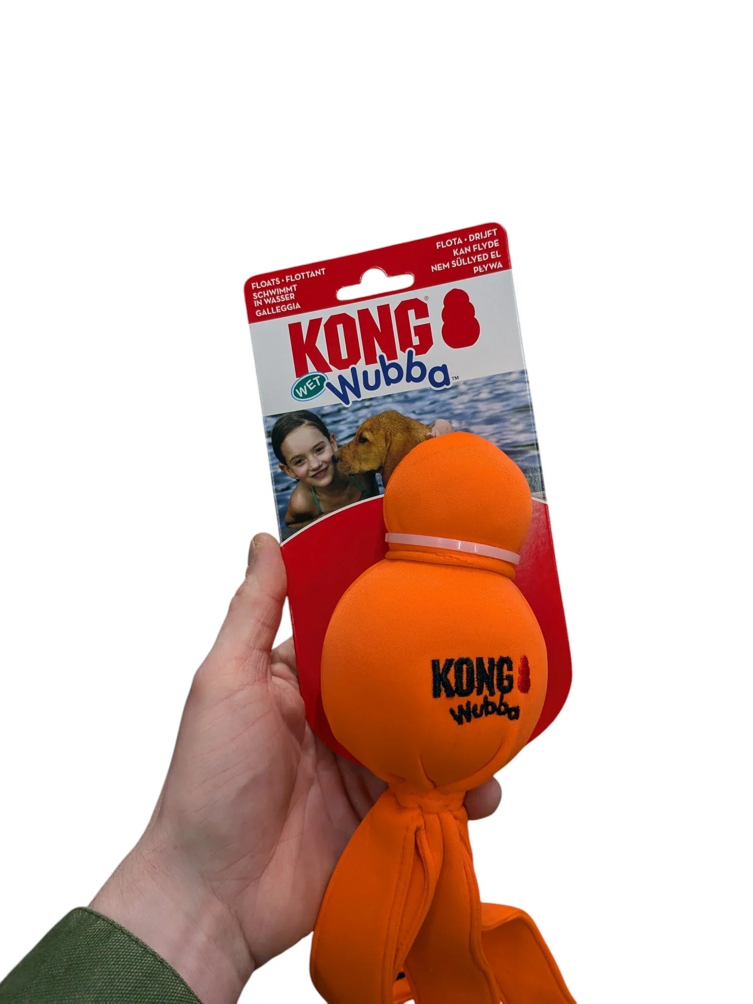 The KONG Water Wubba is perfect for dogs who love playing in and around water. This durable toy is made of neoprene , a waterproof and quick-drying material that completely covers the tennis ball. The long legs make the Wubba easy to throw and easy for your dog to grab. Plus, it floats, making it ideal for fetch games in the water or even in the snow! This dog toy is 35.5 cm long. The ball has a diameter of approximately 9 cm.