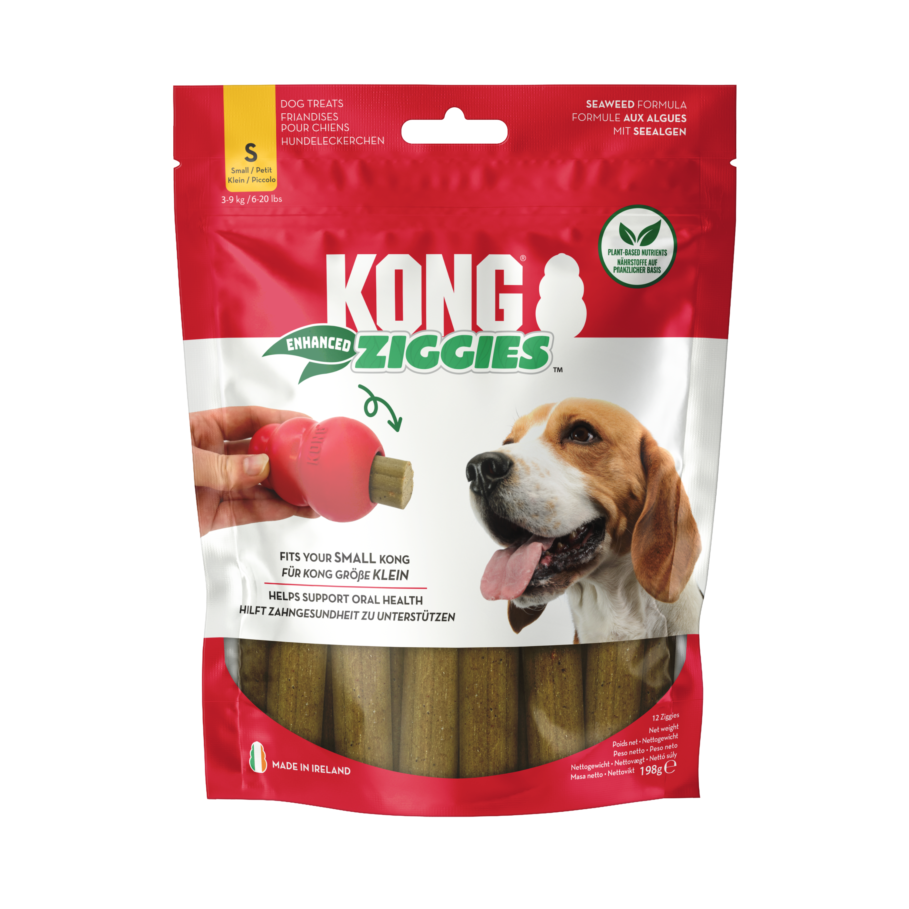 Enriched with sea kelp, a nutrient-rich source of minerals, vitamins, and trace elements. Naturally delicious Ziggies™ help support oral health. Firm, chewy texture helps cleans teeth and massages gums. Plant-based formula. No wheat, corn, or soy. Ideal as anytime treat or KONG stuffing.