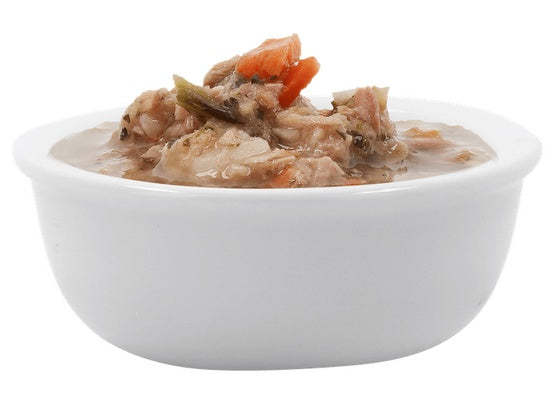 Bulion z tuńczyka 56,5%, filet z tuńczyka 38%, ziemniak 2%, skrobia z tapioki 1,5%, marchew 1,4%, brokuły 0,6%
