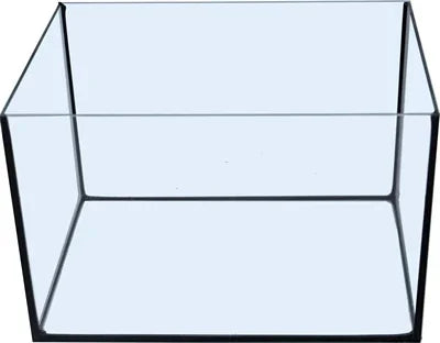 Glass aquarium without a top cover. The aquarium's seams are sealed with durable black sealant, holding the panels in place.