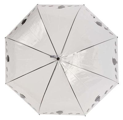 The 85cm Birdcage Umbrella Transparent/Black is a stylish umbrella with a curved handle and a transparent top featuring a bird print. Something different, it keeps you nice and dry and stands out! The umbrella is transparent and printed with bird silhouettes on a wire. Not only does this look great, but it also gives you a clear view of your surroundings because you can see through the umbrella. The umbrella has a curved handle for easy handling and hanging anywhere.