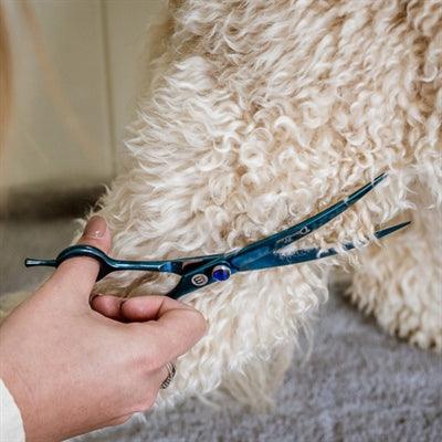The Mikki Doodle Curved Scissors 19 cm are ideal for trimming your doodle's coat at home. Regular trimming prevents matting and keeps your pet clean. With these curved scissors from Mikki, you can do this at home! These scissors are perfectly suited for creating a beautiful shape in the coat. Brush the coat thoroughly before you start and give your pet breaks during trimming to prevent discomfort.