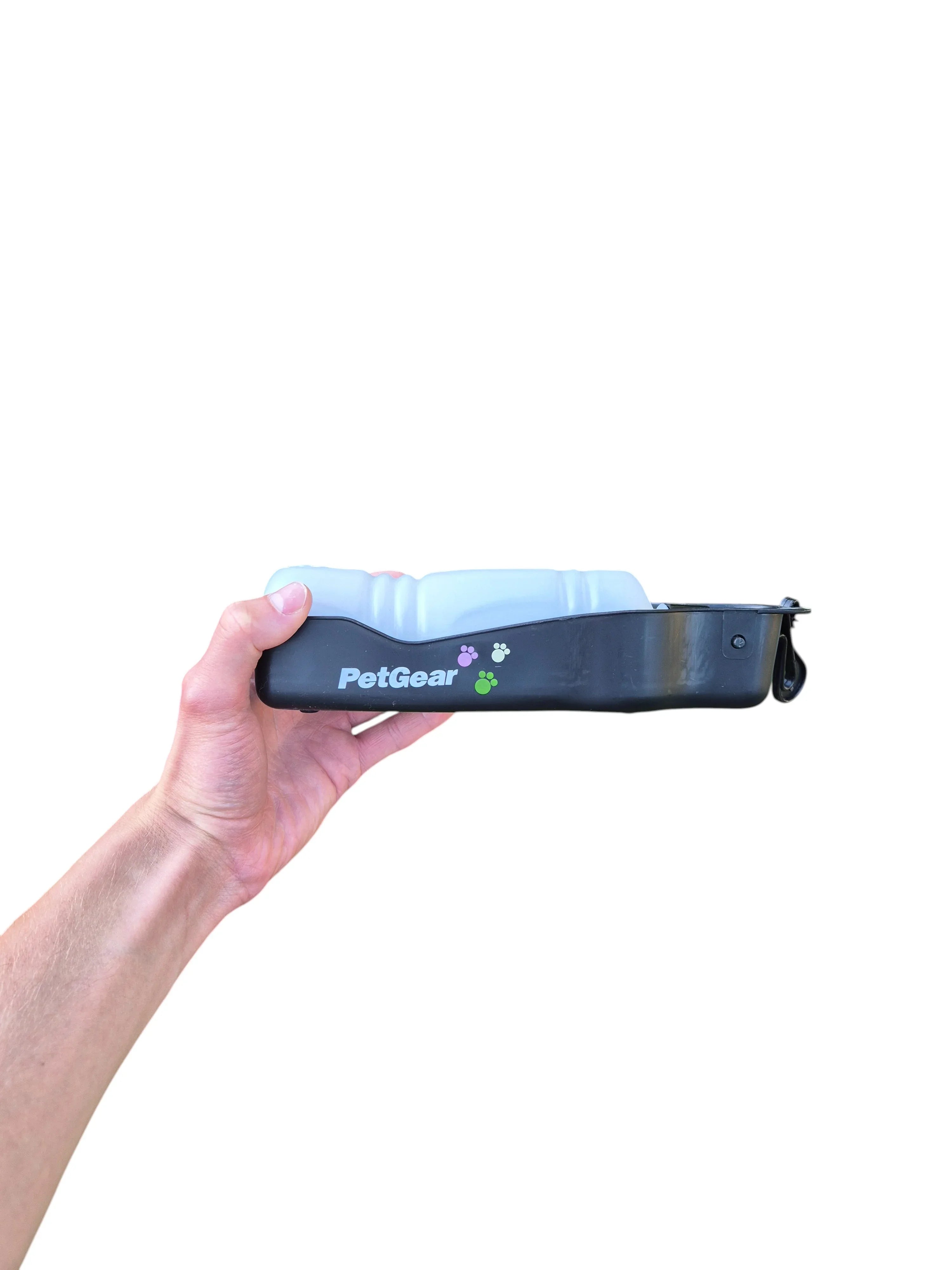 The 500ml Petgear water bottle is a smart solution for dog owners who are often on the go. This lightweight water bottle is ideal for walks, car rides or summer adventures. Thanks to its foldable design, the bottle and reservoir form a single, convenient unit, so you don't need to carry a separate water bowl.
