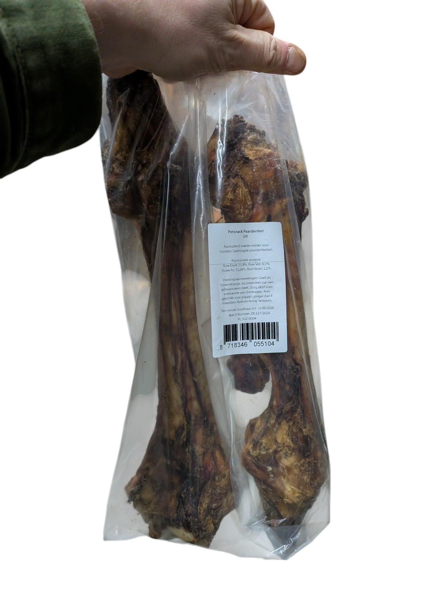 Het paardenbot is een aanvullende snack en geen volledige voeding. Je kunt het veilig enkele keren per week aanbieden, afhankelijk van de grootte en kauwbehoefte van jouw hond.