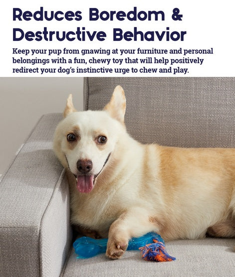 Smukły kształt zabawki i wytrzymały materiał sprzyjają zaspokojeniu naturalnej potrzeby gryzienia i żucia wszystkich piesków.