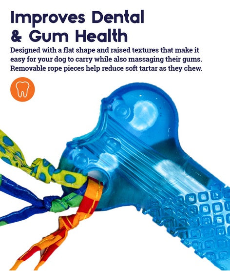 Smukły kształt Kosteczki i wytrzymały materiał sprzyjają zaspokojeniu naturalnej potrzeby gryzienia i żucia wszystkich małych piesków.