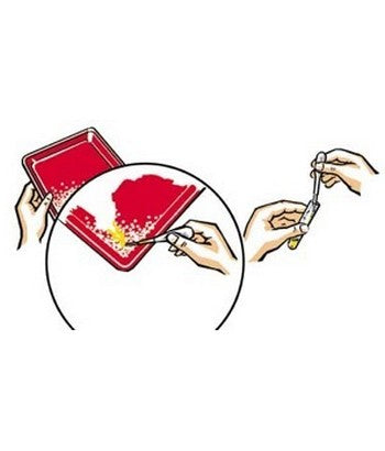 7. Jeśli kot nie chce korzystać z podłoża KatKor, jego zwyczajowy żwirek może być umieszczony w rogu kuwety, alby znajomy zapach zachęcił kota. Jest jednak ważne, aby nie dopuścić do zanieczyszczenia próbki przez normalne granulki. Metoda ta powinna być stosowana tylko w wyjątkowych przypadkach.