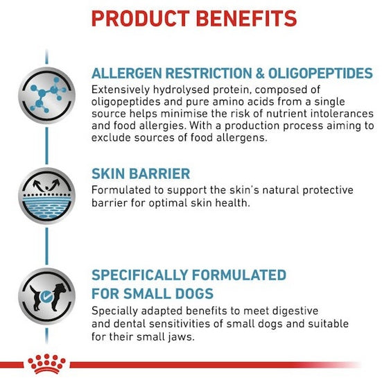 Receptura karmy oparta o pojedyncze źródło białka o znacznym stopniu hydrolizy, zawierające oligopeptydy i wolne aminokwasy, pomaga ograniczyć ryzyko rozwoju niepożądanych reakcji na pokarm. Proces produkcji opracowany tak, aby wykluczyć potencjalne źródła alergenów.